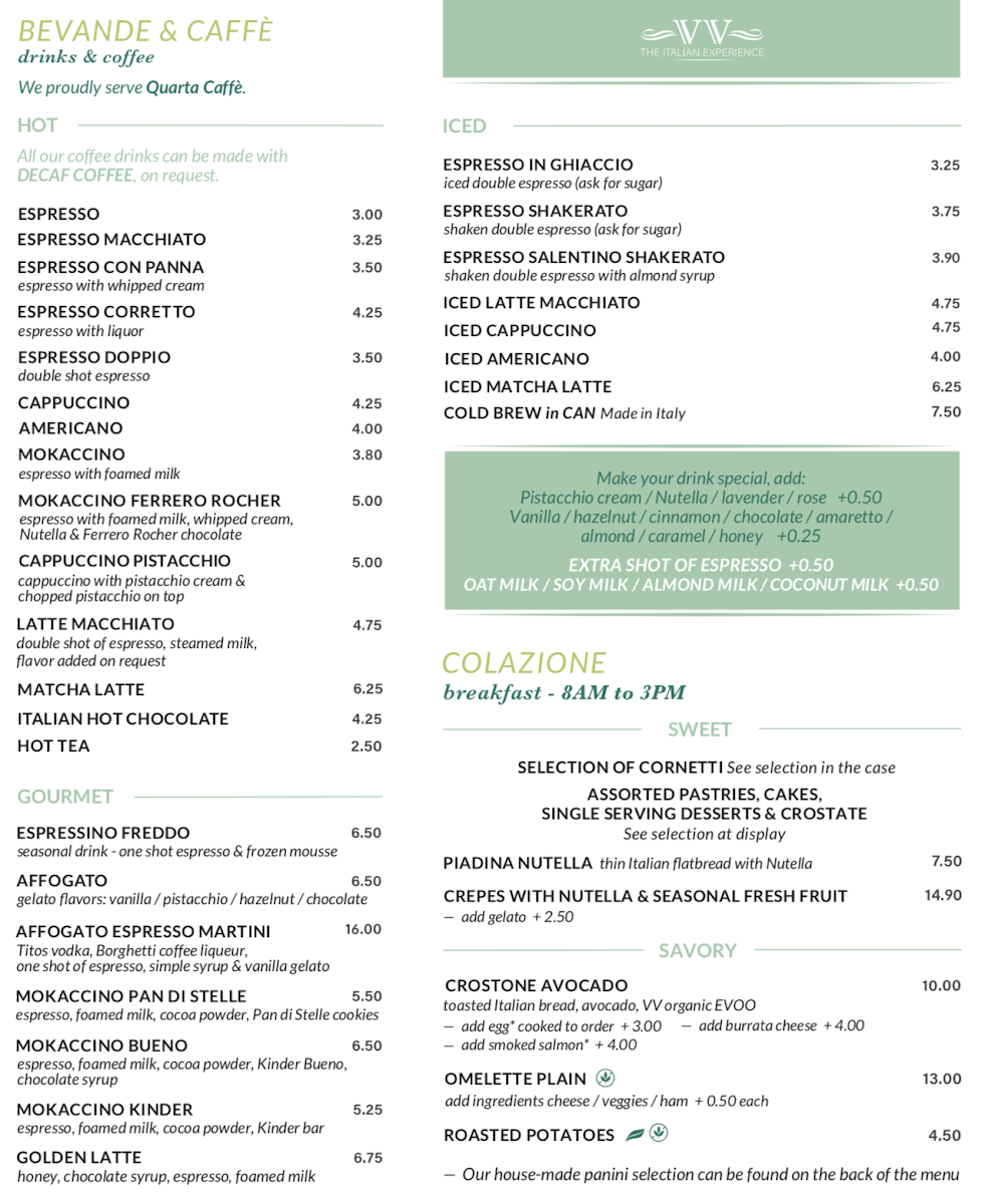 With a commitment to quality and authenticity, VV The Italian Experience invites you to savor the essence of Italy right in Ohio.